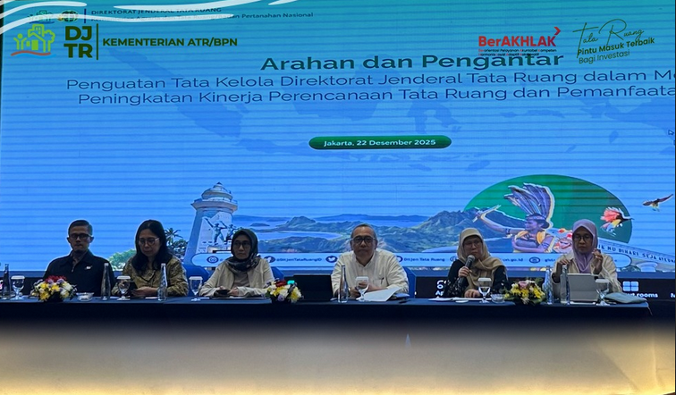 Penegasan tersebut disampaikan Dirjen Tata Ruang saat memberikan arahan dalam Rapat Penguatan Tata Kelola Direktorat Jenderal Tata Ruang dalam Mendukung Peningkatan Kinerja Perencanaan Tata Ruang dan Pemanfaatan Ruang, yang digelar di Sari Pacific Jakarta, Autograph Collection, Senin (22/12/2025).